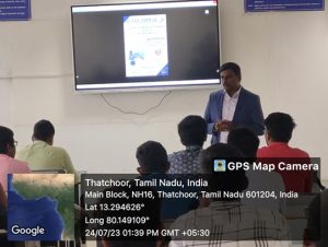 | 7 | Placement Support Training Session | 2 Days | 26.07.2023 27.07.2023 | III Year & IV Year Mechatronics Engineering Students | Mr. K. Kalaivanan Ms. V. Deepa Ms. K. Manisha Sharma Mr. S. Somu Dept. Of English Velammal Institute of Technology | Mr. R. Ohmsakthi vel |