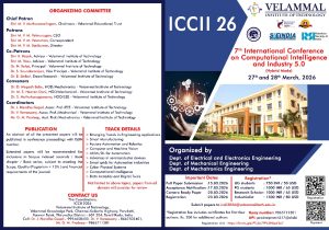 VELAMMAL INSTITUTE OF TECHNOLOGY – ICCII 26 – International Conference on Computational Intelligence & Industry 5.0 organized by departments of Mechanical, Mechatronics & EEE on March 27th-28th in *Hybrid Mode!