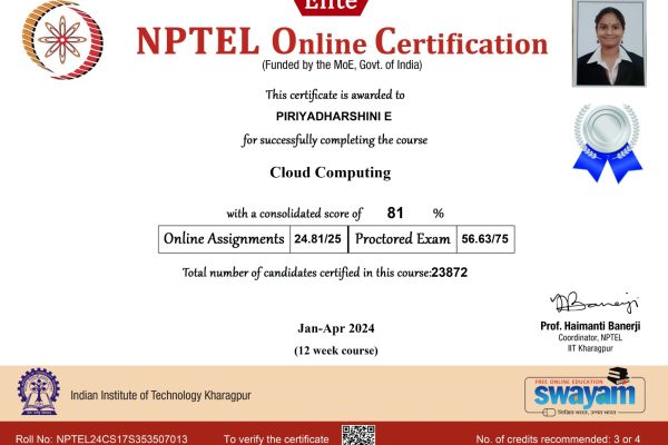 - Our students’ participation and success in NPTEL (National Programme on Technology Enhanced Learning) courses further highlight our academic process.