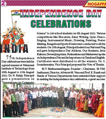 Home » News & Events » Mogappair Times newspaper news clipping about Our College Independence Day celebrations. (21.08.2022)