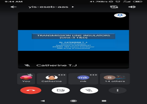 On 10.4.21, Guest lecture of Transmission and Distribution was held in EEE dept. The Eminent person of subject Dr. T.J.Catherin, Prof/EEE, RMK COLLEGE OF ENGG. She has covered unit 3 in the subject of Transmission Distribution. | Velammal Institute of Technology